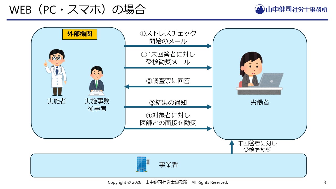 - 労働者がPCもしくはスマホで調査票に回答します。